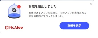 マカフィーがきちんと仕事してました。きちんと仕事してるんだから怒れないよね・・・