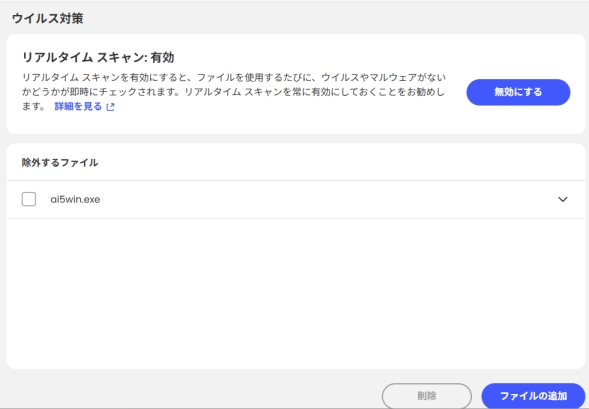 マカフィーのリアルタイムスキャンから設定変更できます。